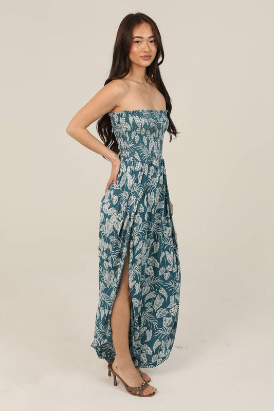 SMOCKED TUBE WRAP PANT JUMPSUIT