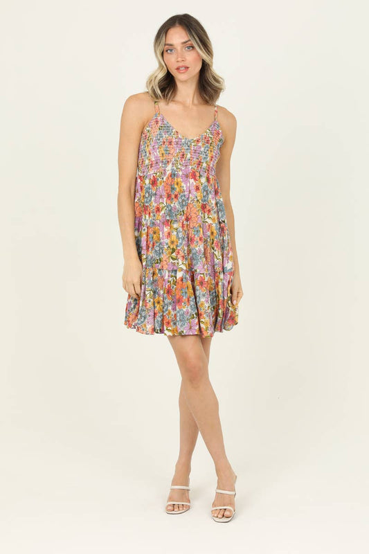 V NECK SMOCKED BUST TIERED SUNDRESS