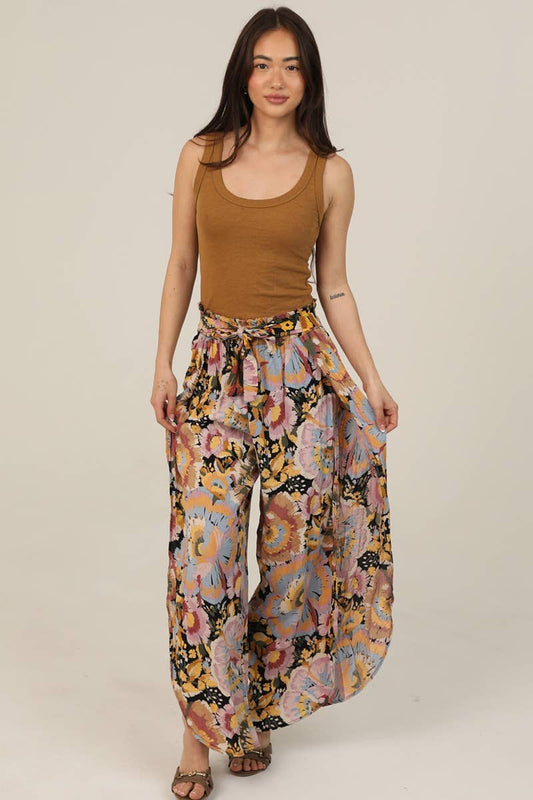 FLORAL PRINT WRAP PANTS