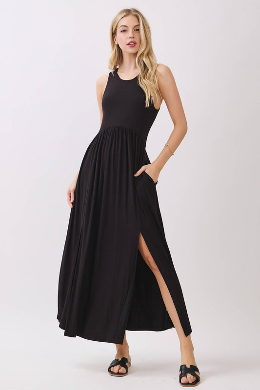 Solid Sleeveless Midi Dress with Front Slit
